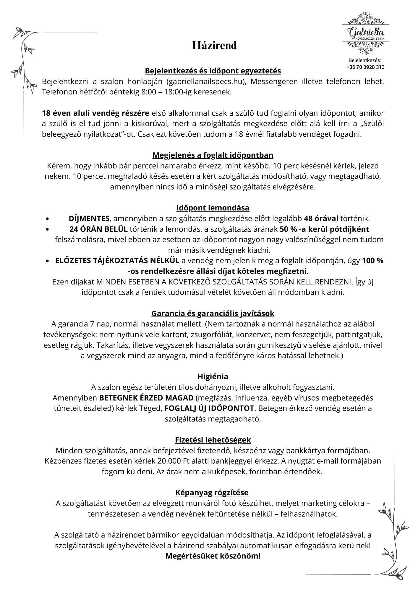 FONTOS: Kérem időpont foglalás elött az 5-ös pontban lévő Házirendet olvassák el, mert foglaláskor az automatikusan elfogadásra kerül.Azonnali időpontfoglaláshoz: